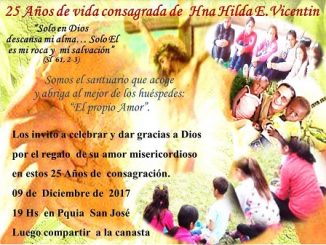 ¡EL PRÓXIMO SÁBADO 9 DE DICIEMBRE ACOMPAÑEMOS CON UN CORAZÓN AGRADECIDO Y ALEGRE, A LA HNA HILDA VICENTIN EN SUS 25 AÑOS DE VIDA CONSAGRADA!
