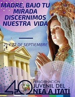 Este fin de semana, 20 y 21 de septiembre se llevara a cabo la 40ª edición de la Peregrinación Juvenil del NEA rumbo a la basílica de la Virgen de Itatí, en esta oportunidad bajo el lema “Madre, bajo tu mirada discernimos nuestra vida”.