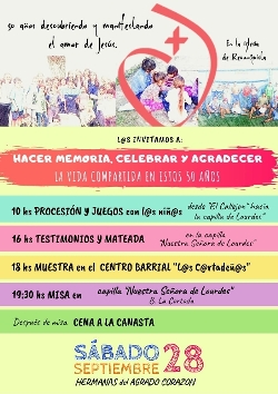 Con una misa que estará presidida por el Obispo, Mons. Ángel José Macín, este sábado 28 de septiembre en la Capilla “Nuestra Señora de Lourdes” del Barrio La Cortada de Reconquista, a las 19.3 se agradecerá los 50 años de servicios y entrega de las Hermanas del Sagrado Corazón de Jesús en la diócesis de Reconquista.