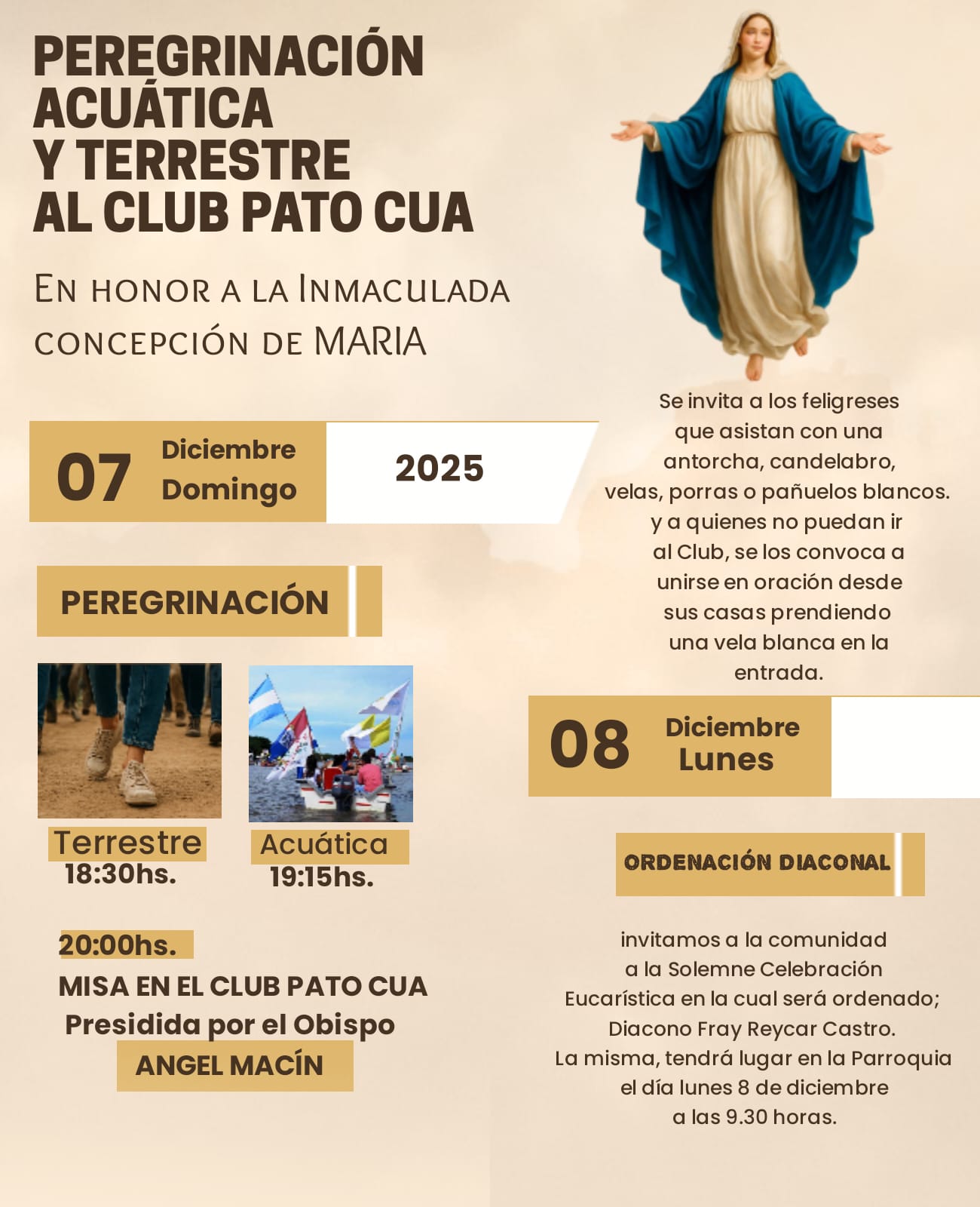 La Parroquia Nuestra Señora de la Asunción de Las Toscas se prepara para vivir nuevamente la Peregrinación Acuática y Terrestre al Club Pato Cuá, el próximo 7 de diciembre de 2025, en honor a la Inmaculada Concepción de María.