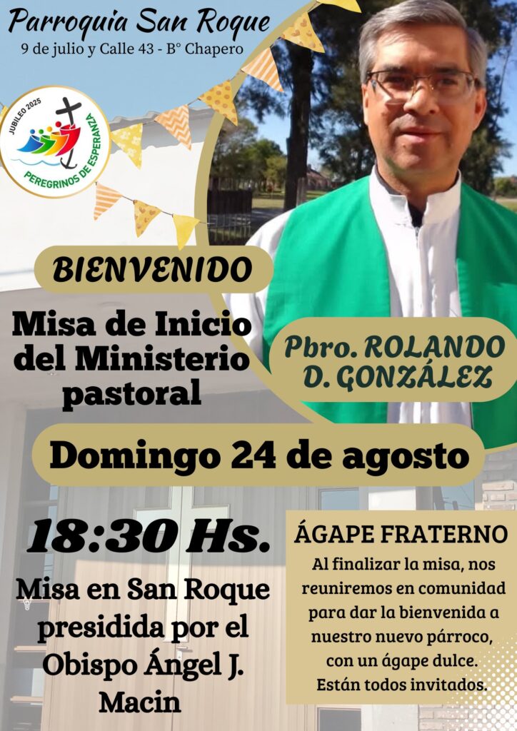 Asimismo, el día domingo 24, el Pbro. Rolando Danilo González asumirá el oficio de Párroco de la parroquia «San Roque» de la ciudad de Reconquista.