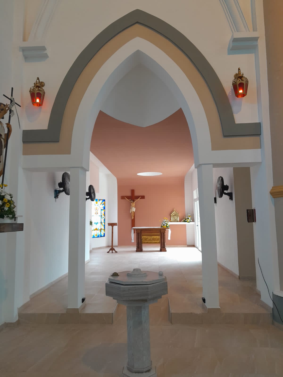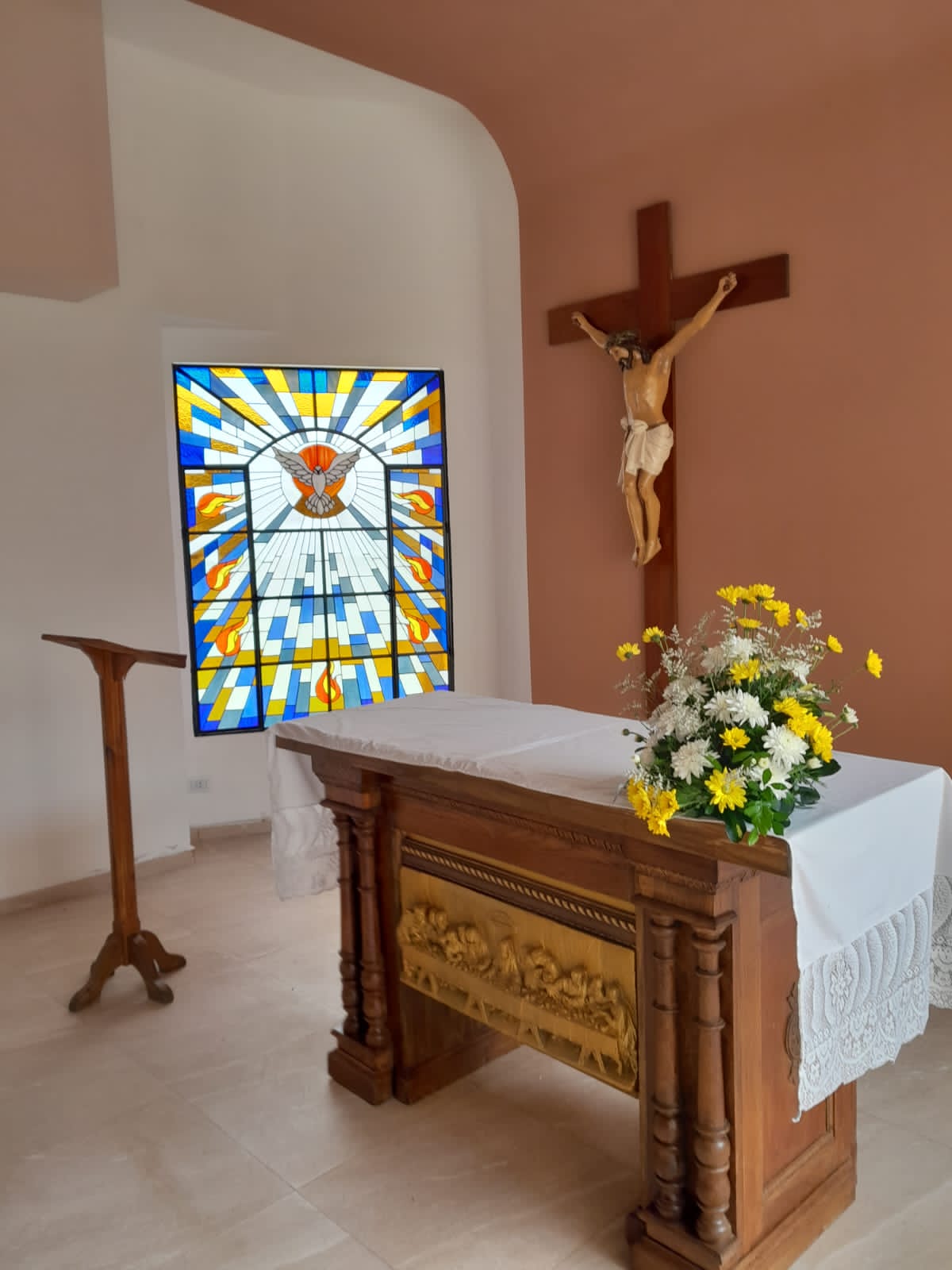 Y esto es lo tercero que les quería decir: tal vez alguno pudo pensar, por lo menos yo me lo imaginé, en el decreto decía “luego de suplicar las luces del Espíritu Santo” –y eso no es una mera fórmula: yo como Obispo tengo que ser el primero en invocar al Espíritu para que me ilumine- Y una de las cosas que en el momento de decidir sobre el pedido del padre Carlos sobre esto fue lo siguiente: ¿será conveniente hacer ahora esta dedicación o sería bueno que esperemos a que esté pintado y arreglado en la parte central y posterior? Y me pareció que era el momento oportuno, porque de alguna manera el Templo así, hermoso como lo vemos, resplandeciente, pero al mismo tiempo en construcción nos dice que esa es la Iglesia.