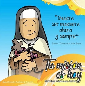 Desde el 1º de octubre, celebración de la festividad de Santa Teresa del Niño Jesús, patrona de las misiones, comienza el Octubre Misionero que, en la Argentina, lleva por lema “Tu misión es hoy”.