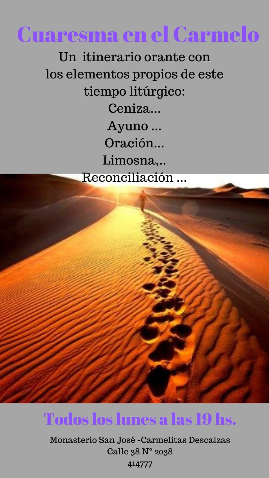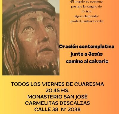 Asimismo, las hermanas Carmelitas, han preparado una dinámica que consta de todos los viernes de cuaresma, en el Monasterio (calle 38 nº 2038 de la ciudad de Reconquista) un momento de oración contemplativa junto a Jesús camino al calvario.