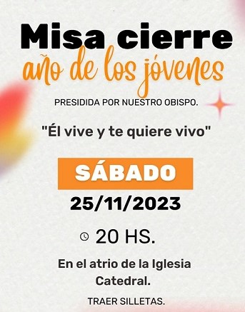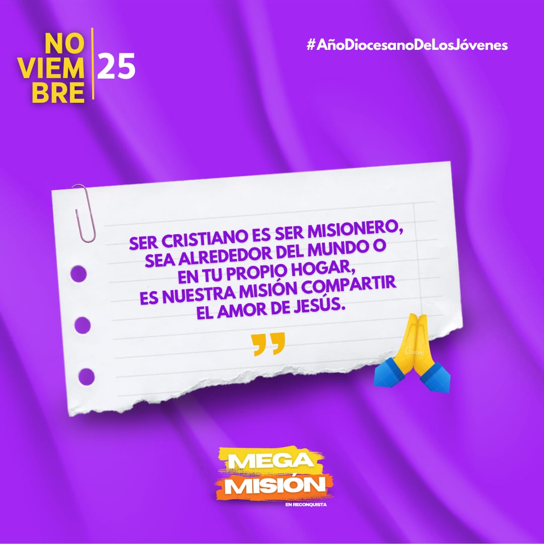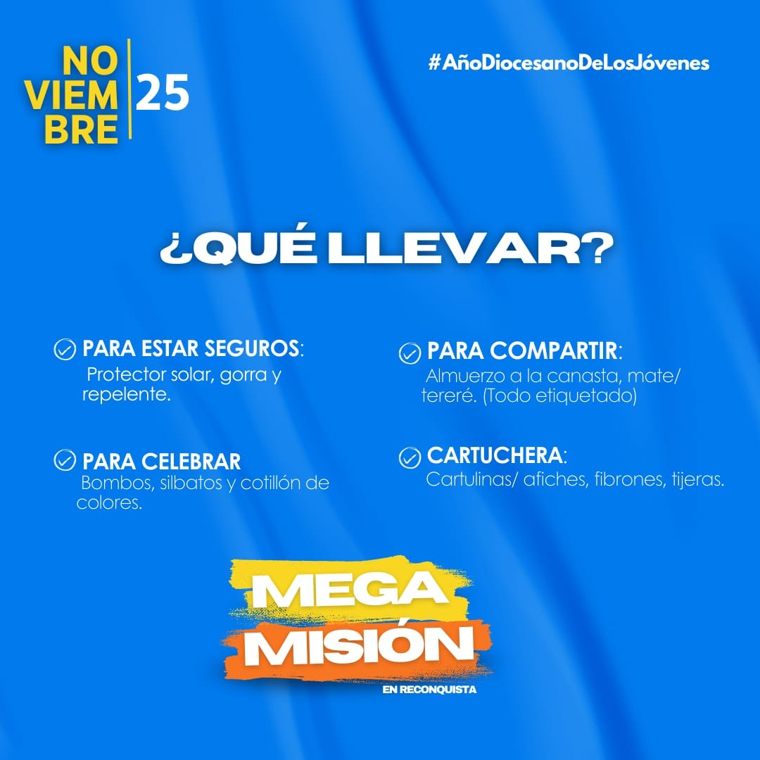 Bajo el lema Él Vive y te quiere Vivo”, este sábado 25 de noviembre en la Parroquia «San Roque» de Reconquista, se vivirá el cierre del Año Diocesano de los Jóvenes con una Mega Misión diocesana.
