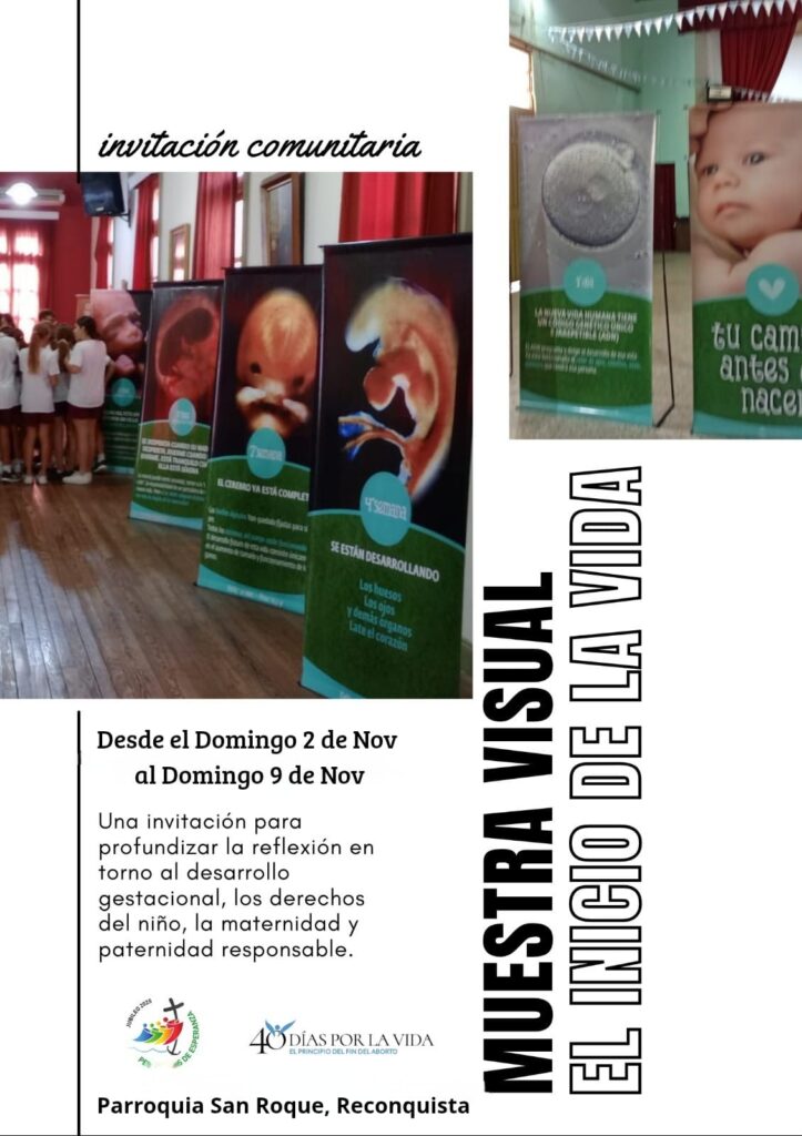 Desde el Obispado de Reconquista, hacemos extensiva la invitación de la Parroquia «San Roque» de la ciudad de Reconquista, a participar de la muestra visual «El Inicio de la Vida», un espacio para profundizar la reflexión en torno al desarrollo gestacional, los derechos del niño, la maternidad y paternidad responsable.