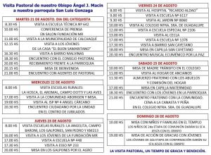 Invitamos a toda la comunidad de la Parroquia «San Luis Gonzaga» a participar activamente de las actividades propuestas en esta visita pastoral y a unirse en la oración por los frutos de la misma.